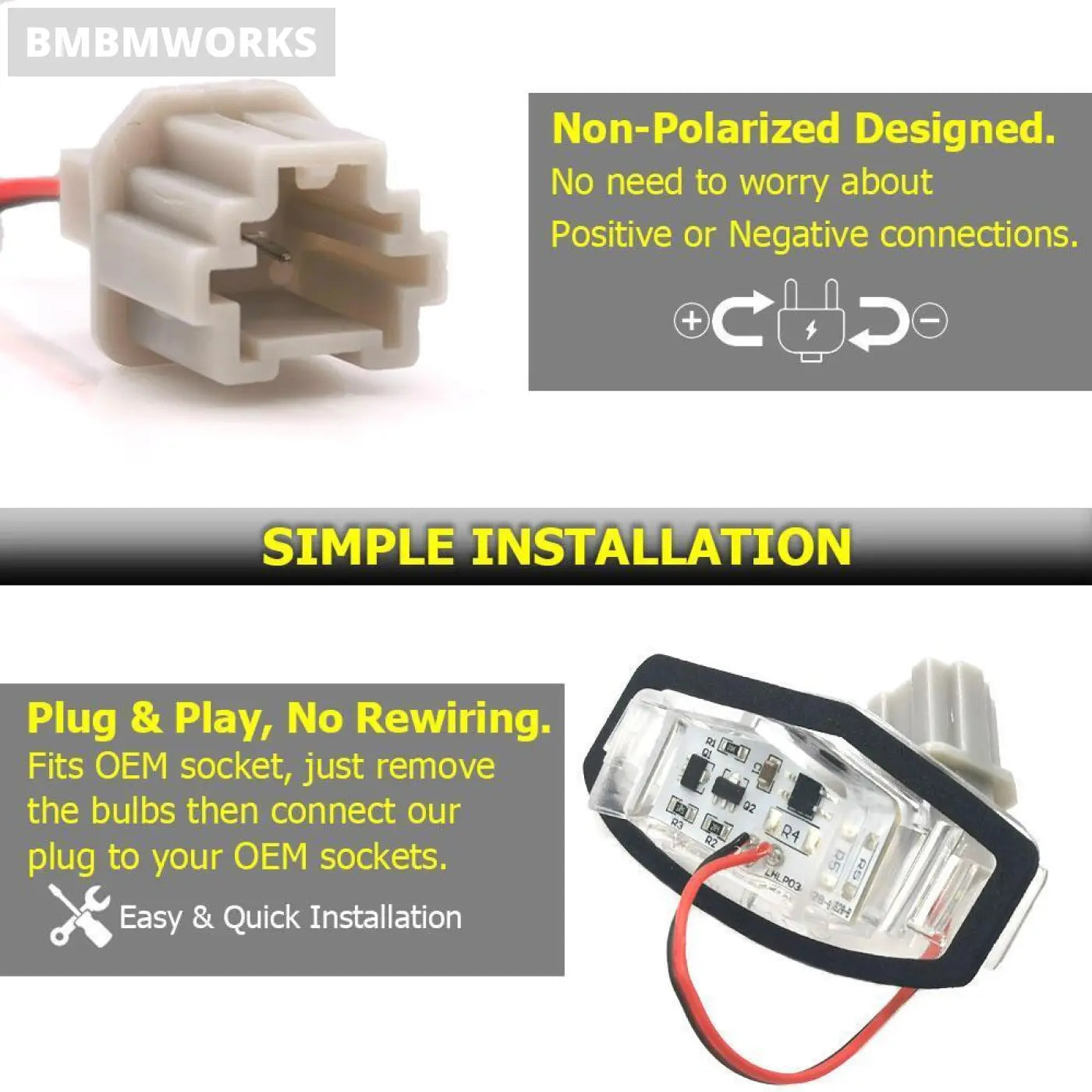 2 x Direct-Fit License Plate Light Assembly.